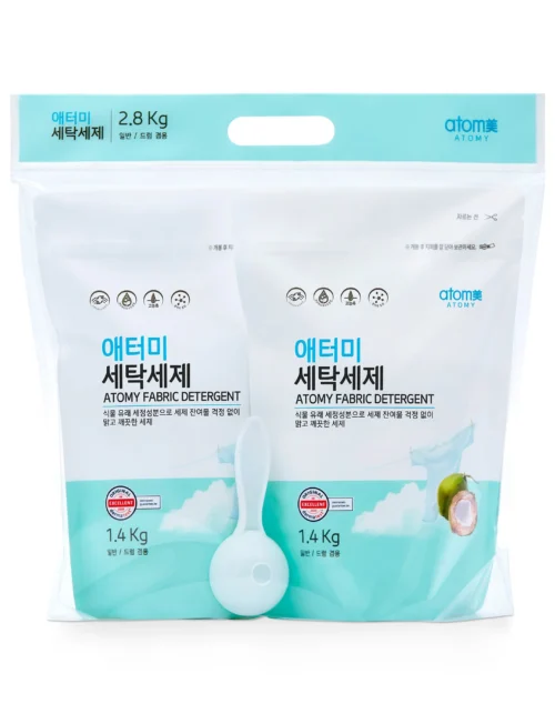 Цей порошок виготовлений на основі рослинних інгредієнтів — кокоса та цукрової тростини. На відміну від інших порошків, Fabric Detergent від Atomy не містить шкідливих синтетичних компонентів, таких як цеоліт, хлорвмісні вибілювачі, фосфати, тваринні продукти тощо.