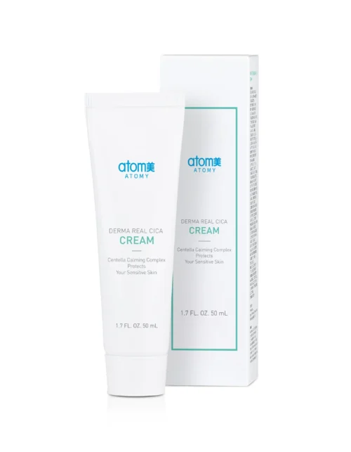 Atomy Derma Real Cica Cream – спеціально розроблений для чутливої шкіри з використанням центелли азіатської, лікарської рослини, яка знімає запалення, заспокоює шкіру та сприяє загоєнню дрібних ран.