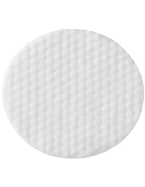 - Після вмивання обличчя акуратно протріть шкіру, уникаючи області навколо очей, рельєфною стороною подушечки, щоб видалити залишки забруднень і відмерлих клітин шкіри.